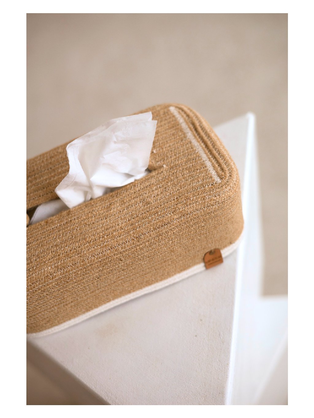 Jutový box na kapesníky AIRA s bílým lemem