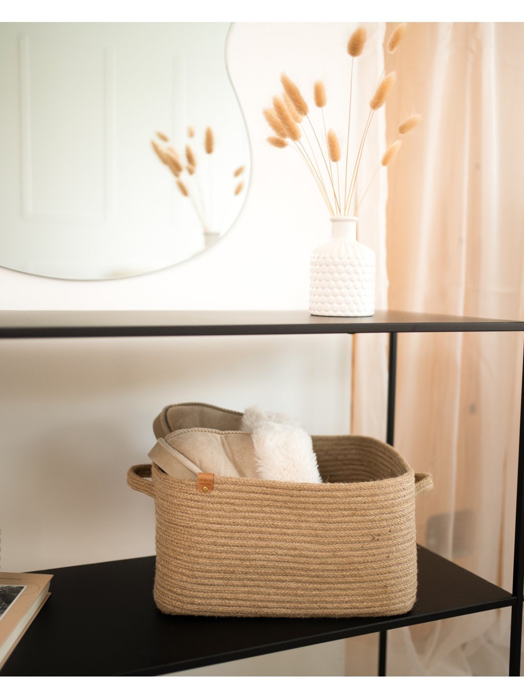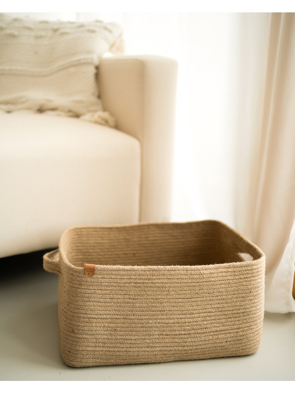 Hranatý jutový koš DASTO ve větším rozměru nabídne spoustu místa pro věci, které nechcete mít jen tak poházené. Díky své velikosti pojme ručníky, oblečení, šály, knihy i dětské hračky. A přitom zůstává krásným doplňkem, který nechcete schovávat.