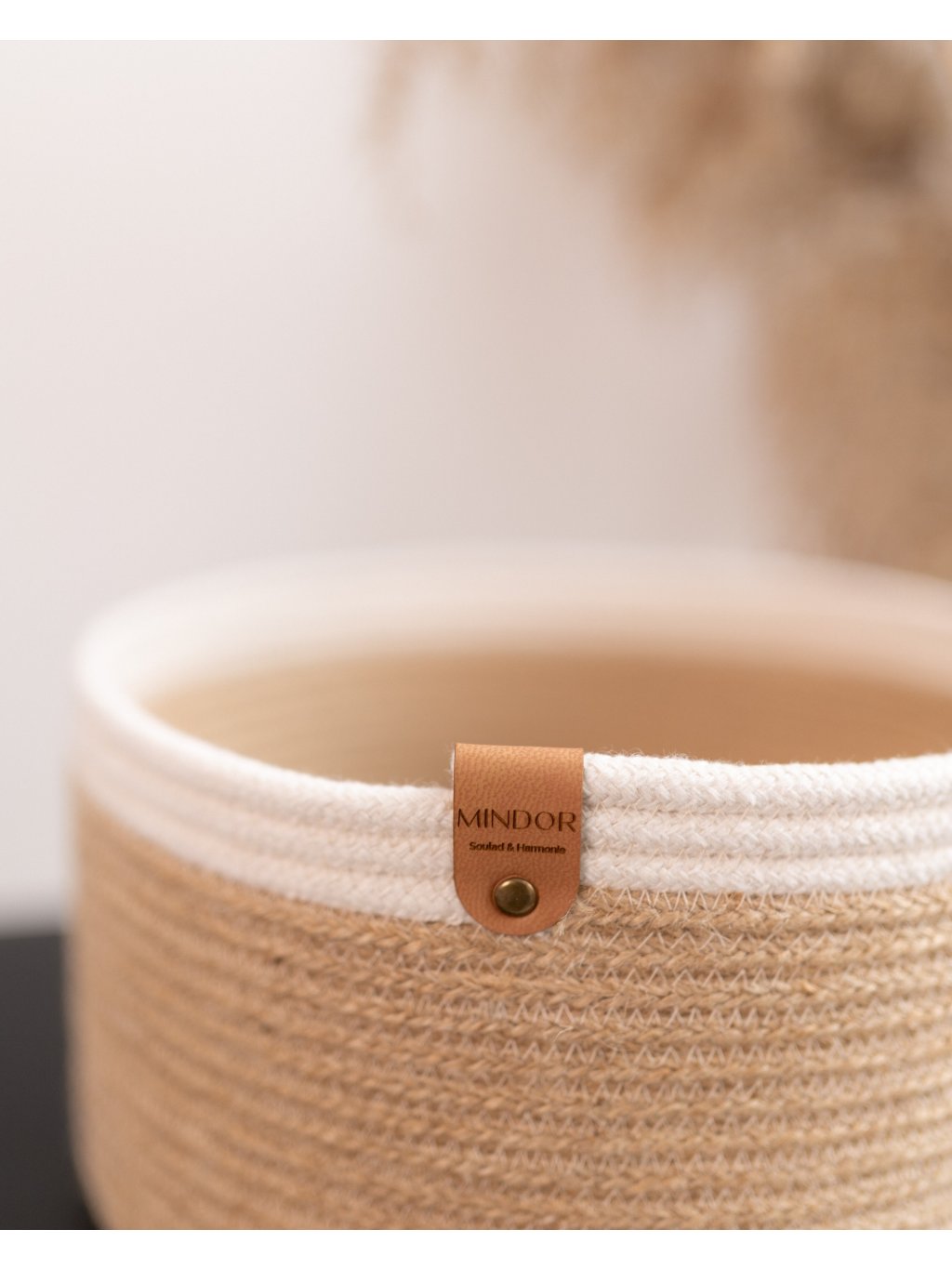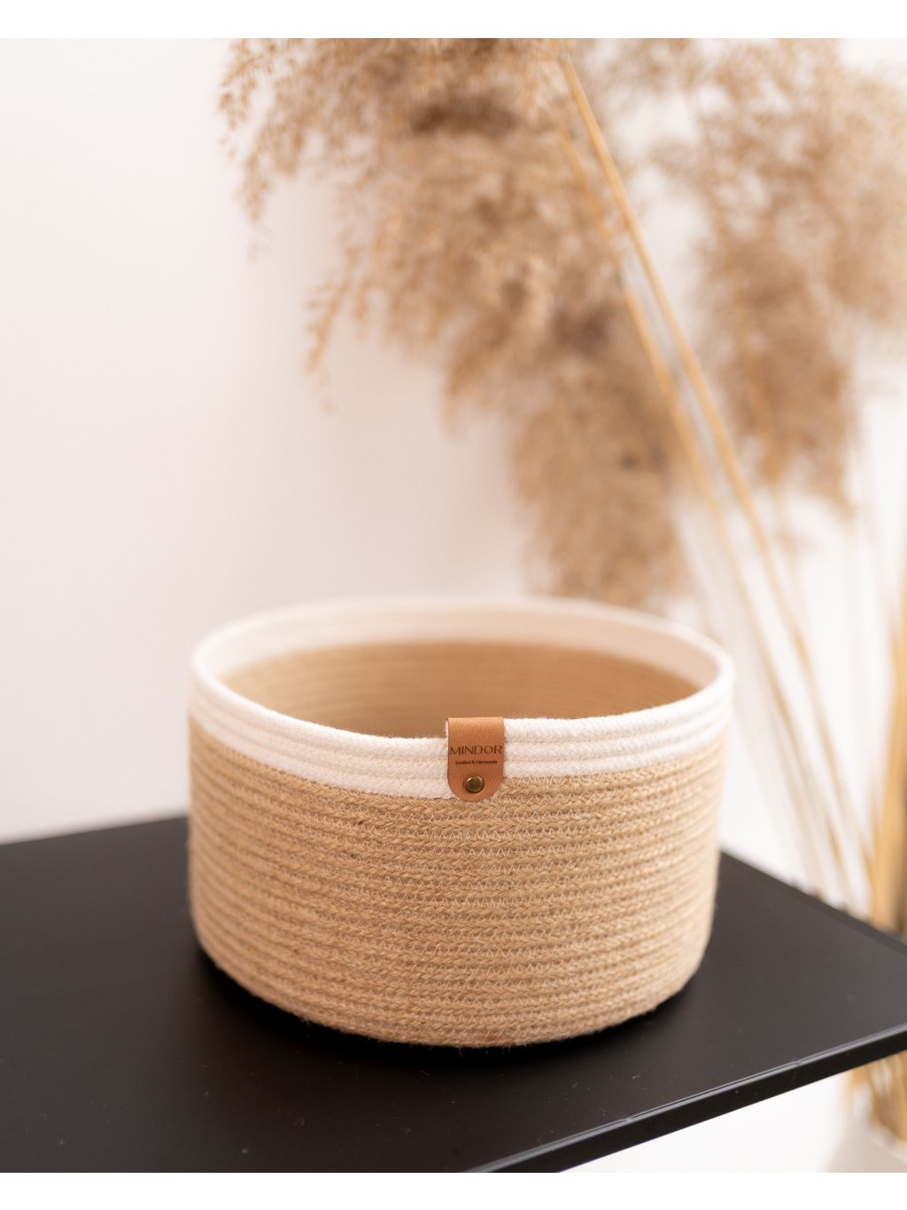 Elegantní jutový košík s bílým bavlněným lemem vnese do každé místnosti čistotu, harmonii a krásný řád.