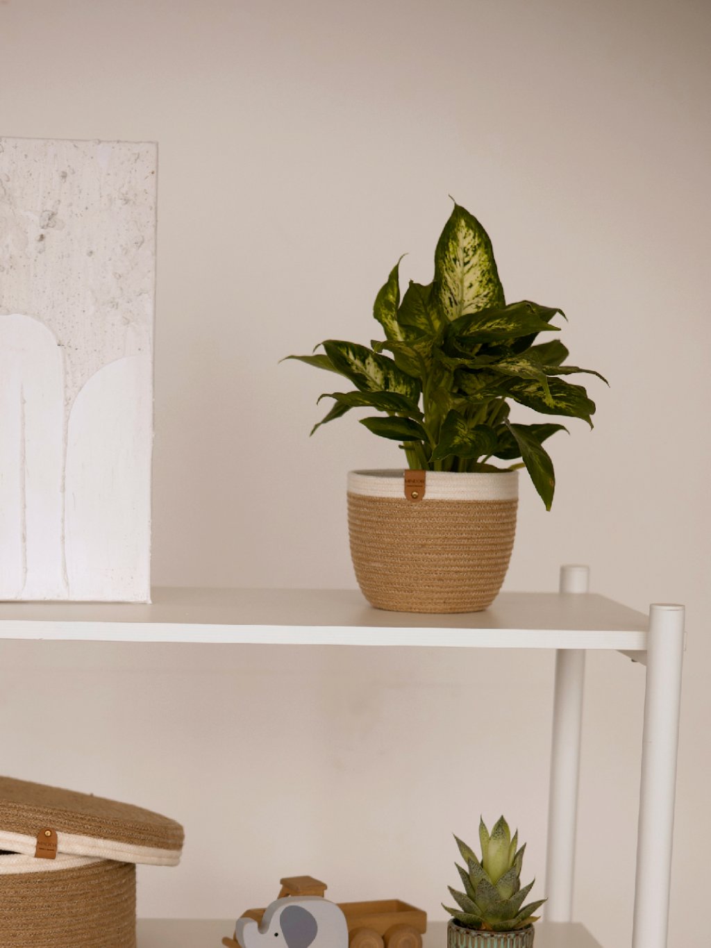 Obal je vhodný pro menší pokojové rostliny, bylinky i sukulenty a krásně se uplatní na parapetu, polici i stolku. Díky neutrálním tónům se snadno kombinuje s dřevem, světlými barvami i dalšími jutovými doplňky.