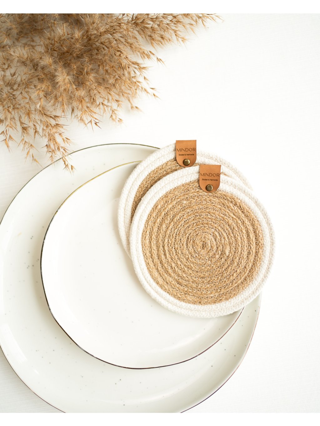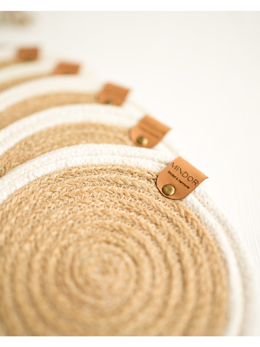 Přírodní juta a bílý bavlněný lem – spojení, které vnese do stolování lehkost, klid a jemnost, které si všimne každý host. Ideální pro každodenní použití i dekoraci stolu. Malý detail, který zjemní celý prostor.