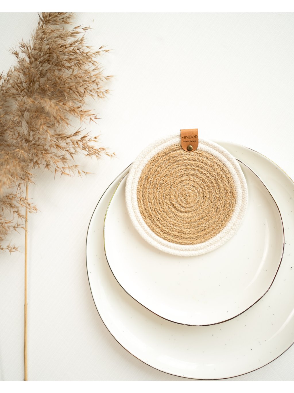 Jutový podtácek s bílým lemem je krásným a funkčním detailem, který vynikne při každém stolování. Díky kombinaci přírodní juty a jemné bavlny působí čistě, elegantně a přináší do prostoru klid. Skvěle chrání stůl před vlhkostí i teplem, a zároveň působí dekorativně. Malý doplněk, který má velký vliv na celkový dojem.