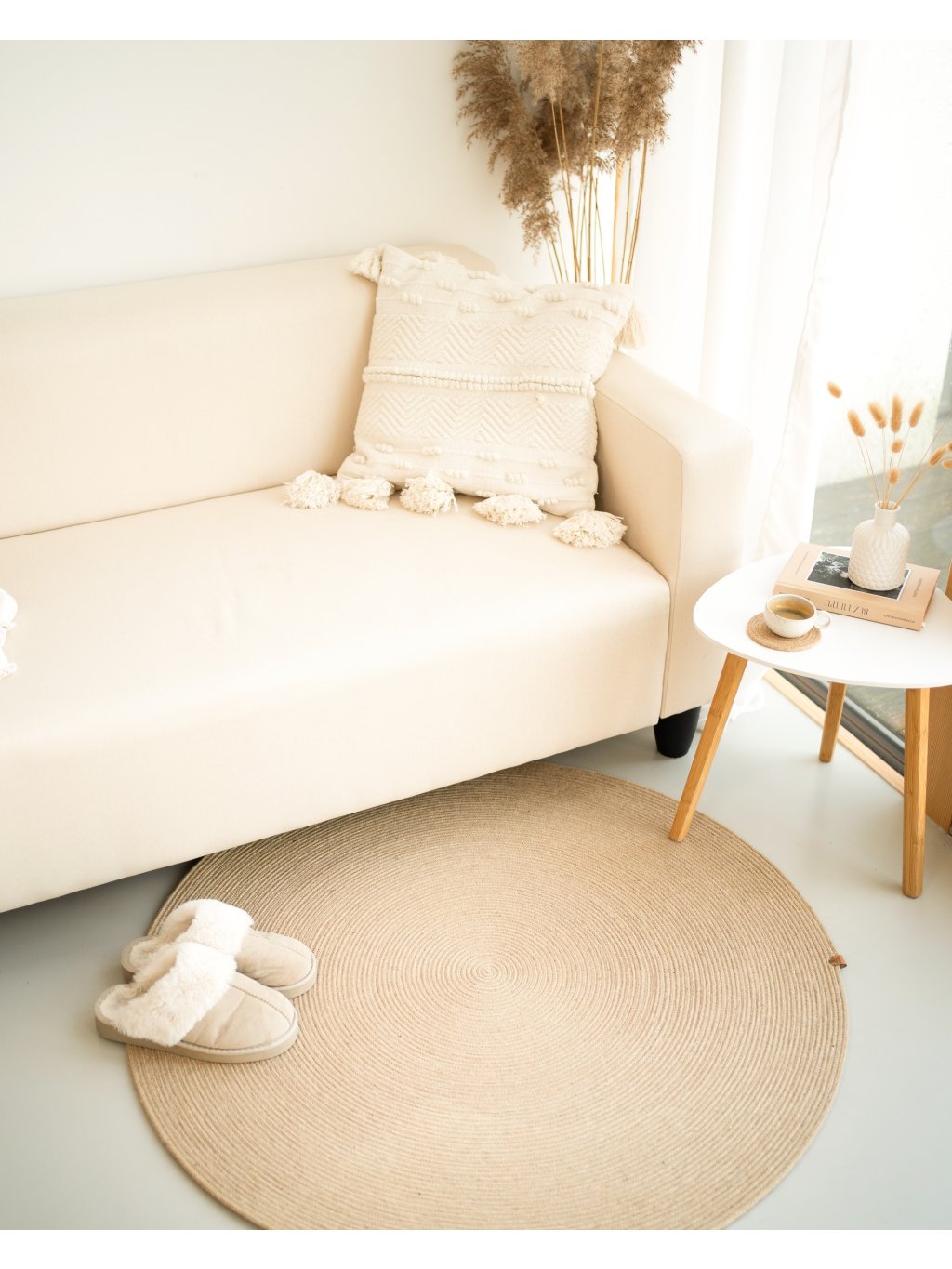 Kulatý jutový koberec MELDON je univerzální kousek, který přináší přírodní energii, klid a vizuální harmonii do každého prostoru. Skvěle se hodí do ložnice k posteli, pod stolek v obýváku, do koupelny i předsíně. Jeho měkký oblý tvar a struktura juty vytvářejí v interiéru útulnou atmosféru.