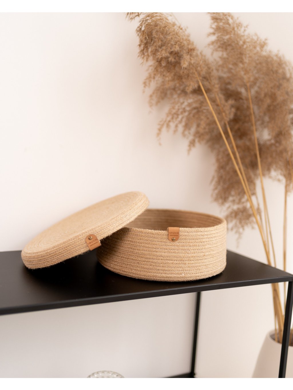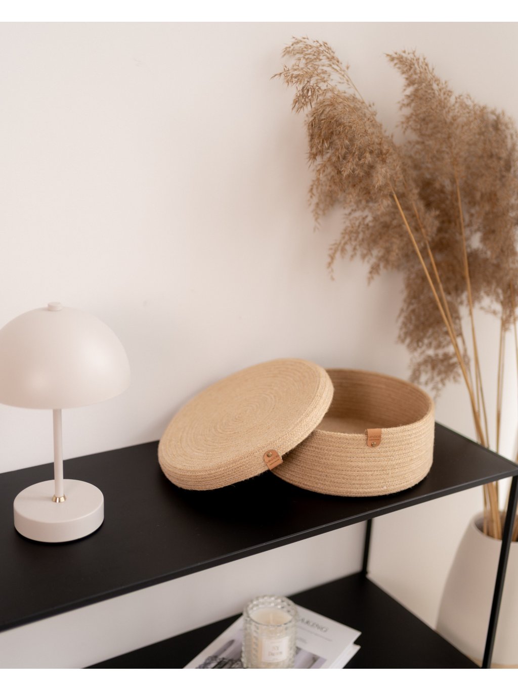 Elegantní kulatý košík z juty s víkem, který v sobě spojuje praktičnost i krásu. Hodí se na všechny drobnosti, které chcete mít po ruce, ale zároveň stylově uložené. Díky víku působí uspořádaně a čistě, ať už ho postavíte do koupelny, ložnice nebo obýváku.