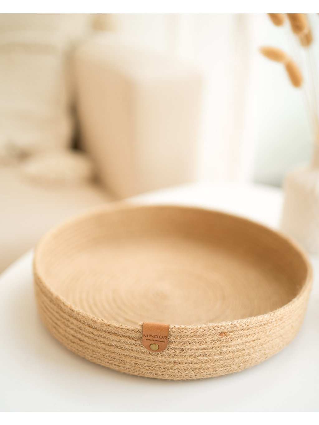 Nízký talíř ARCALIMO z juty je elegantním a zároveň užitečným doplňkem do každého interiéru. Vychutnejte si jeho nadčasový minimalistický vzhled, který ladí jak s přírodním, tak moderním stylem. Díky svému průměru 24 cm je dostatečně prostorný na dekorace i praktické věci, přesto působí jemně a nenápadně. Ruční výroba v malé moravské dílně zaručuje jedinečnost každého kusu a dodává mu osobitý charakter. Tento talíř není jen dekorací – je to praktický organizér, který podtrhne harmonii Vašeho domova.