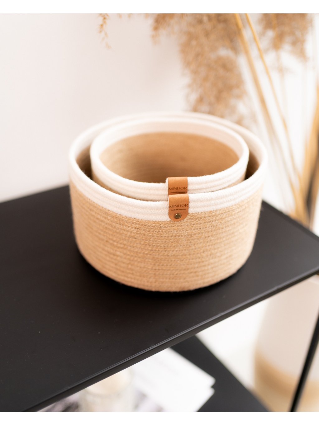 Už žádné rozházené věci – kulaté jutové košíky CALIME pomohou udržet pořádek v koupelně, ložnici i třeba v předsíni. Stylové, ručně šité a s dotekem přírody.
